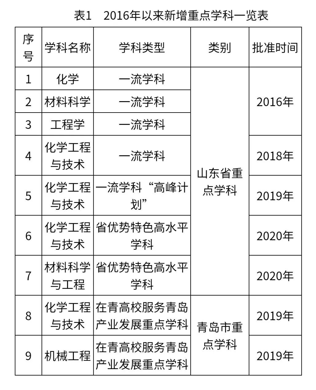2016Ä껯ѧ¡¢ÖÊÁÏ¿ÆÑ§¡¢¹¤³Ìѧ3¸öѧ¿ÆÈëѡɽ¶«Ê¡Öص㽨Éè¡°Ò»Á÷ѧ¿Æ¡±ÐÐÁУ»2018Ä껯ѧ¹¤³ÌÓëÊÖÒÕÈëѡʡһÁ÷ѧ¿Æ£¬²¢ÓÚ2019ÄêÈëѡʡһÁ÷ѧ¿Æ¡°á¯ÁëÍýÏ롱AÀàѧ¿Æ£»2020Ä껯ѧ¹¤³ÌÓëÊÖÒÕ¡¢ÖÊÁÏ¿ÆÑ§Ó빤³Ì2¸öѧ¿ÆÈëѡɽ¶«Ê¡¡°ÓÅÊÆÌØÉ«¡±Àà¸ßˮƽѧ¿Æ£¬Ñ§Ð£Èëѡɽ¶«Ê¡¡°Ç¿ÌØÉ«¡±Àà¸ßˮƽ´óѧ£»2019Ä껯ѧ¹¤³ÌÓëÊÖÒÕ¡¢»úе¹¤³ÌÈëÑ¡ÔÚÇà¸ßУЧÀÍÇൺcq9Ìø¸ß¸ßÓÎÏ·ÍøÕ¾Éú³¤Öصãѧ¿Æ£¨±í1£©¡£ÏÖÔÚÎÒУUS NewsÌìÏÂѧ¿ÆÅÅÃûÉϰñ7¸öѧ¿Æ£¬»¯Ñ§¹¤³ÌÓëÊÖÒÕλÁеÚ102λ¡£ÔÚÌìϵÚËÄÂÖѧ¿ÆÆÀ¹ÀÖУ¬Ñ§Ð£ÓÐ9¸öѧ¿Æ½øÈëǰ70%£¬ÆäÖл¯Ñ§¹¤³ÌÓëÊÖÒÕΪB+£¬Ê¡Êô¸ßУ¹¤¿ÆÎ¨Ò»£¨±í2£©¡£